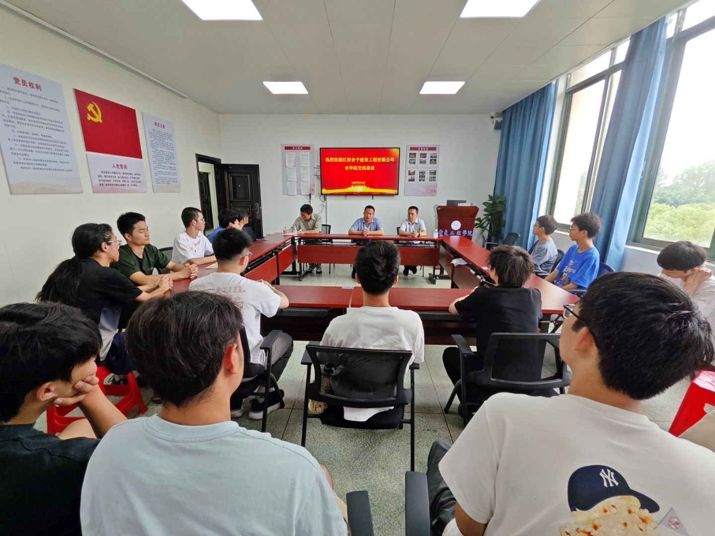 6月19日,江西舍予建设工程有限公司董事长罗超来校开展校园招聘,PA视讯集团网站执行院长刘宝玲与罗超进行了座谈。