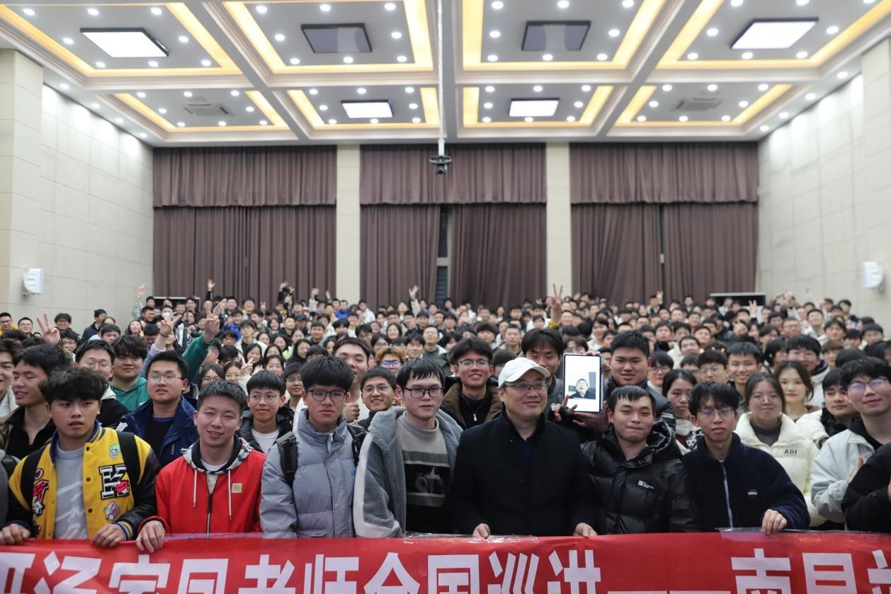 讲座伊始,学院辅导员涂怀谋老师提出考研规划的重要性,希望同学们认真听,做好笔记,为日后考研做好准备。随后,汤家凤老师开始为2021级学生讲如何进行考试数学备考,汤家凤老师讲课声情并茂,以手写结合讲解的方式,为同学们传授着备战考研数学的诀窍。其独特的讲解方式吸引了现场的每一个人,风趣的语言引来一阵阵欢笑。最后,汤老师的高声献唱并与同学们合影