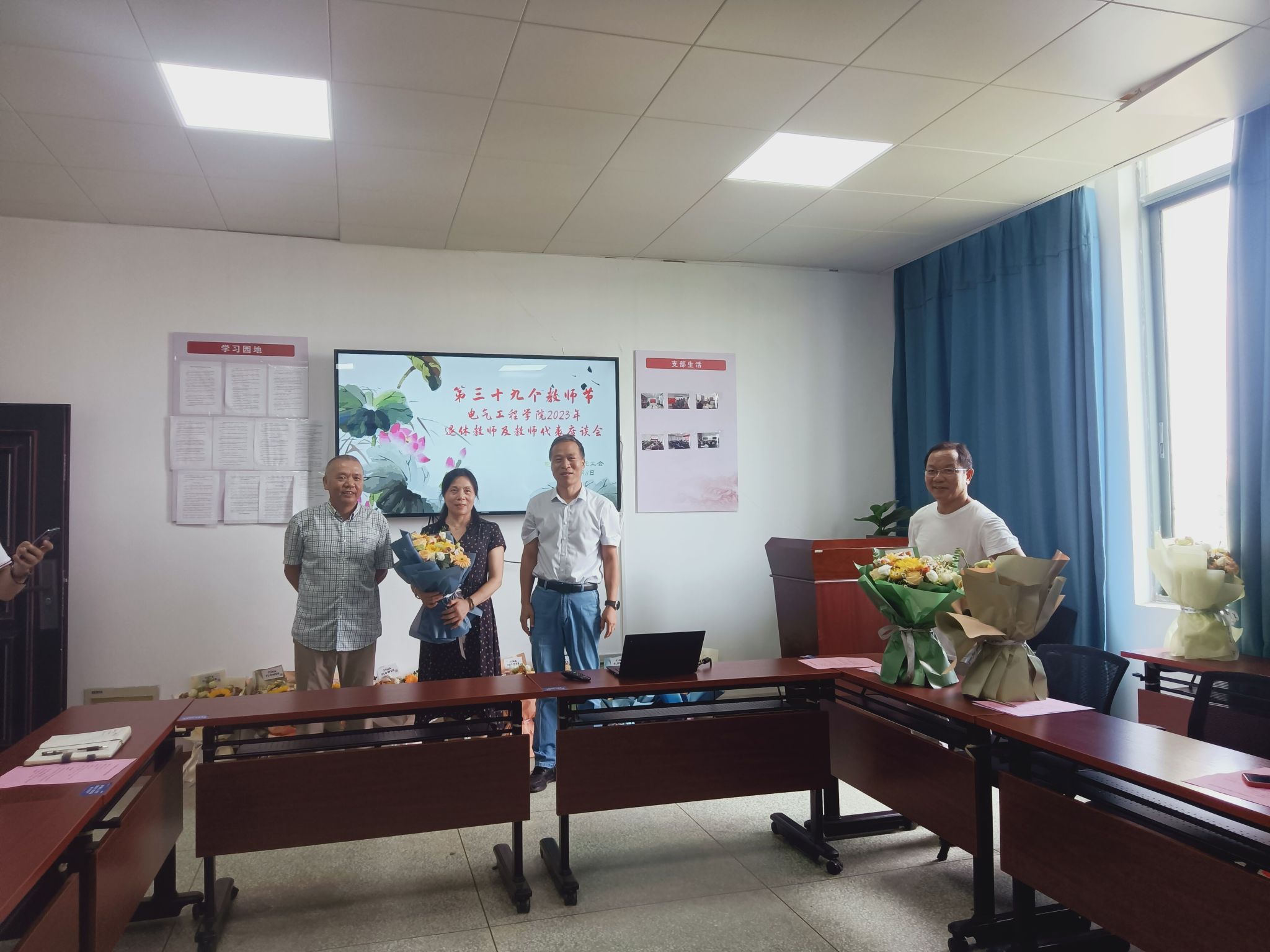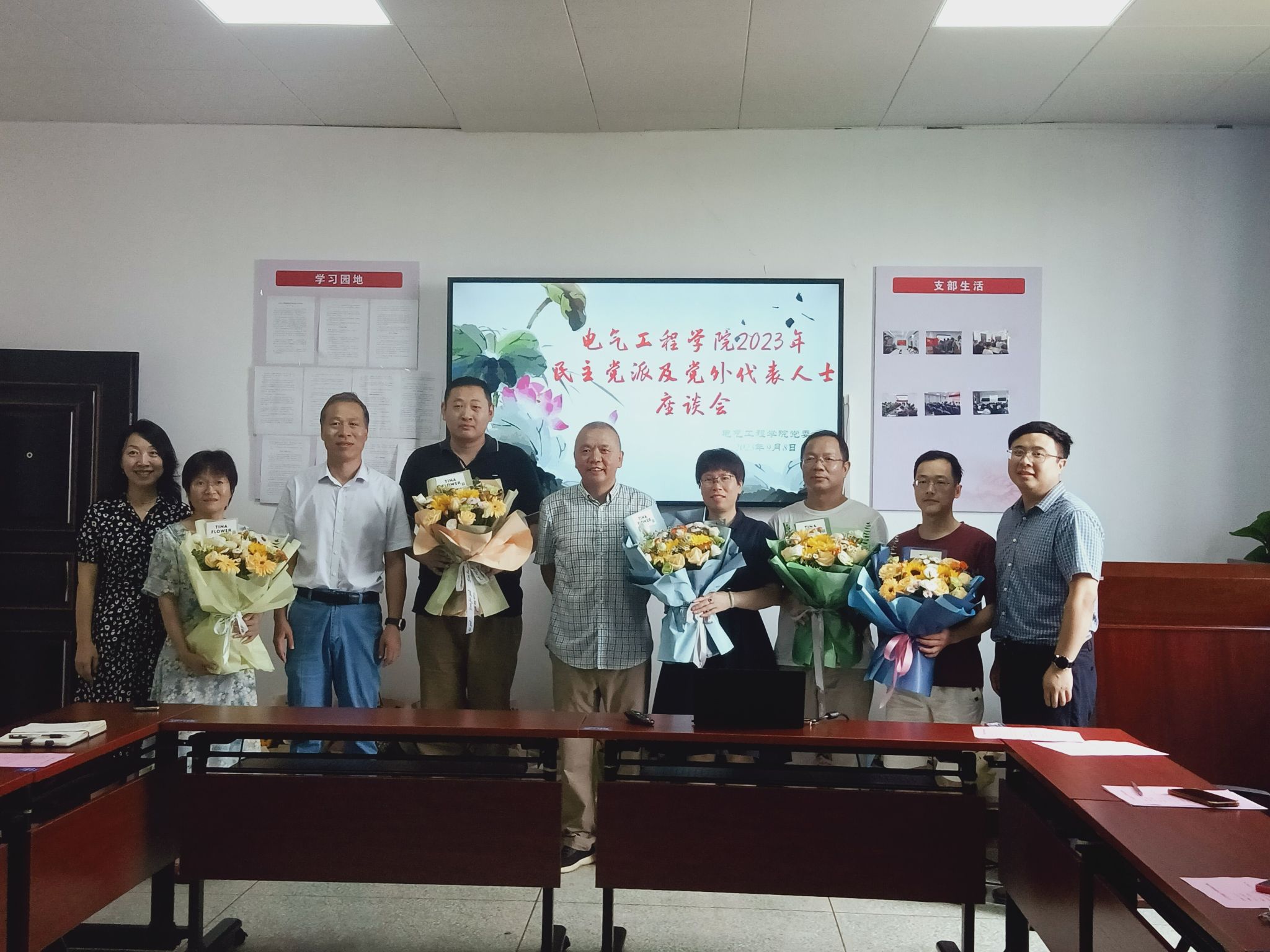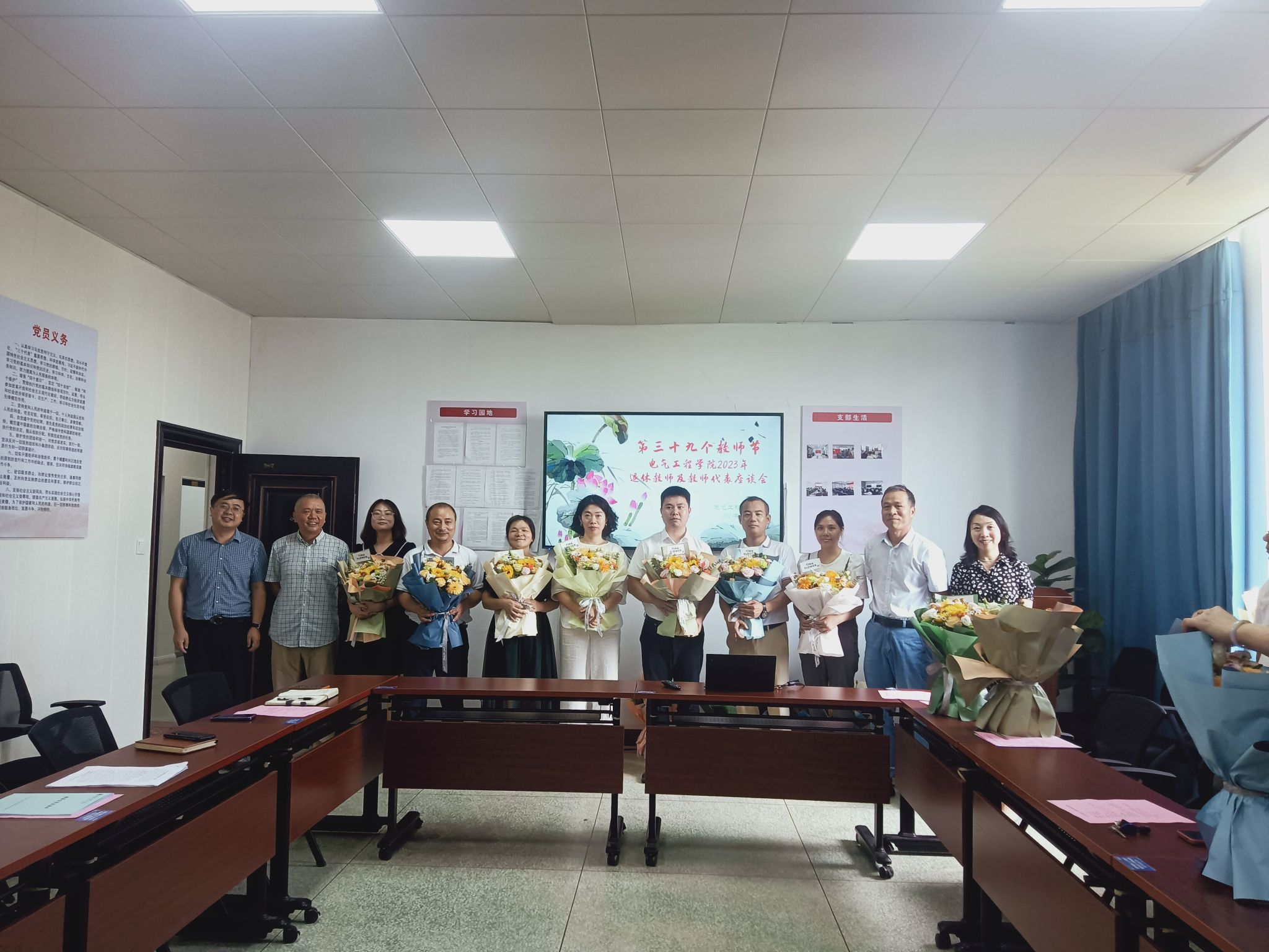 9月8日上午,PA视讯集团网站领导邀请退休教师代表李志红、在岗的十多名教师,在电气楼C402参加座谈会。