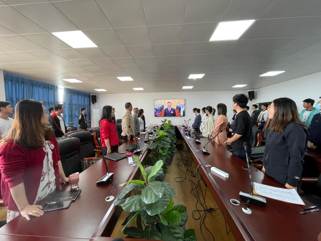 10月16日上午10时,中国共产党第二十次全国代表大会在人民大会堂隆重开幕,PA视讯集团网站组织团员青年设立3个会场集中收看并开展学习讨论。