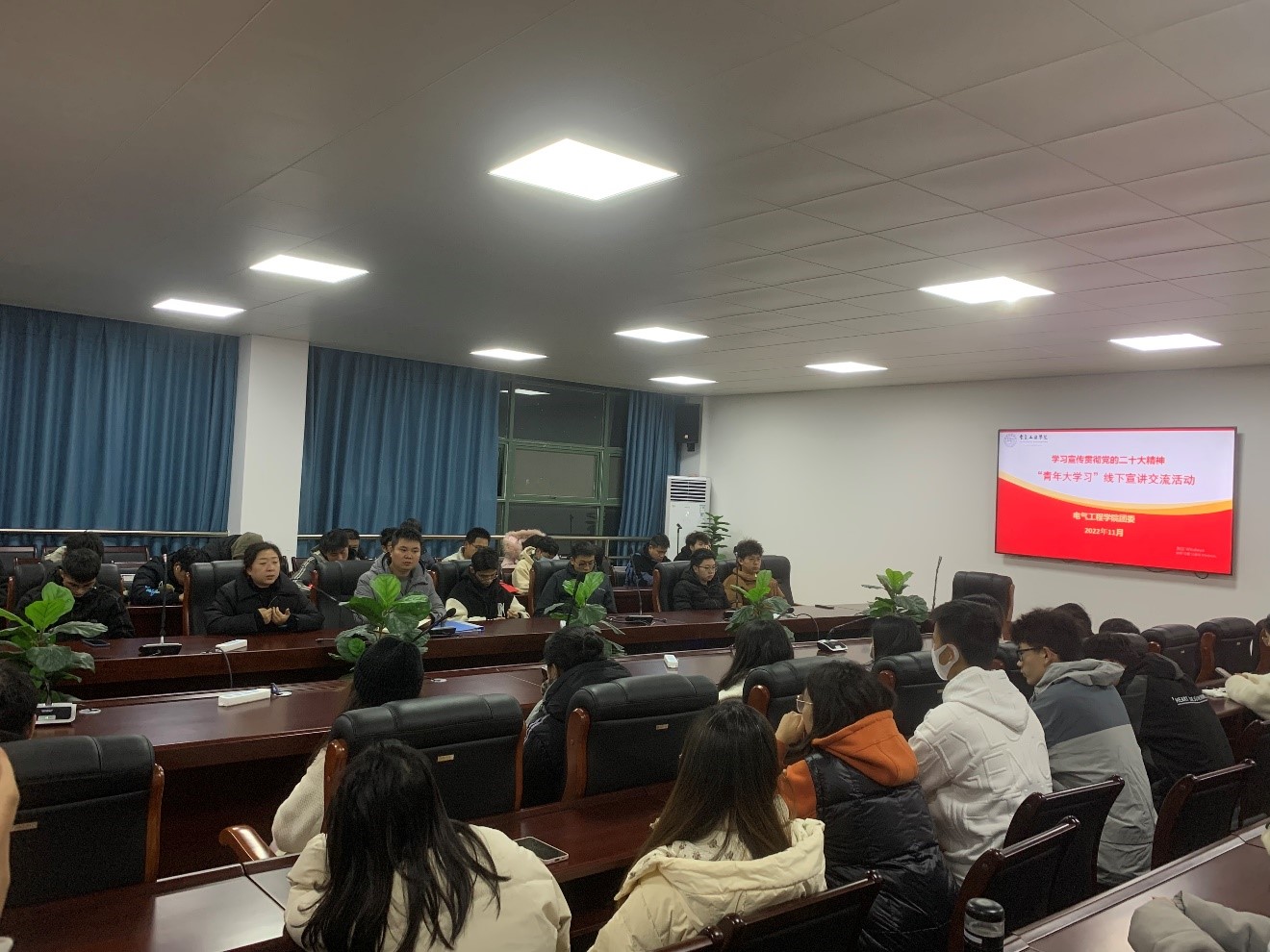 在交流互动环节,20自动化02班团支部张齐闯同学提出了“青年应该始终保持积极向上的奋进态度”的观点;21电气04班团支部耿运康同学表示在聆听中感悟,在交流中找寻青春的“发力点”。