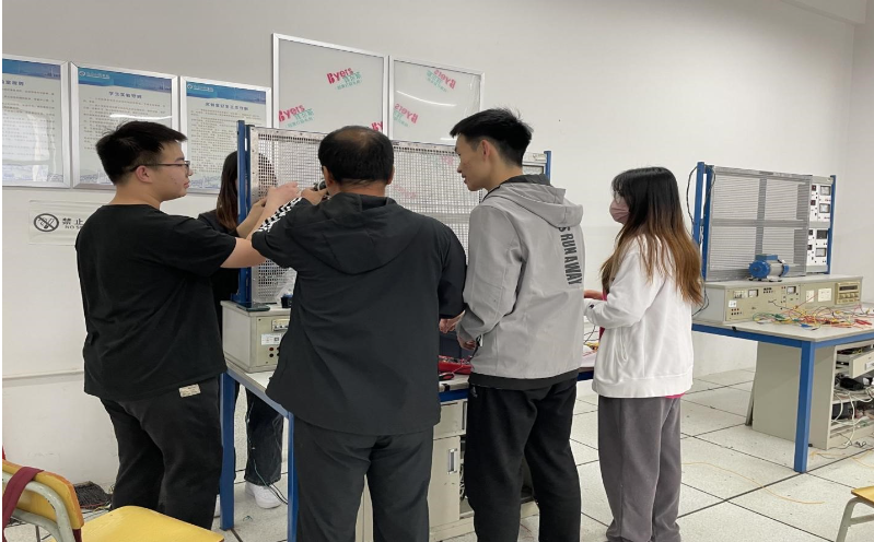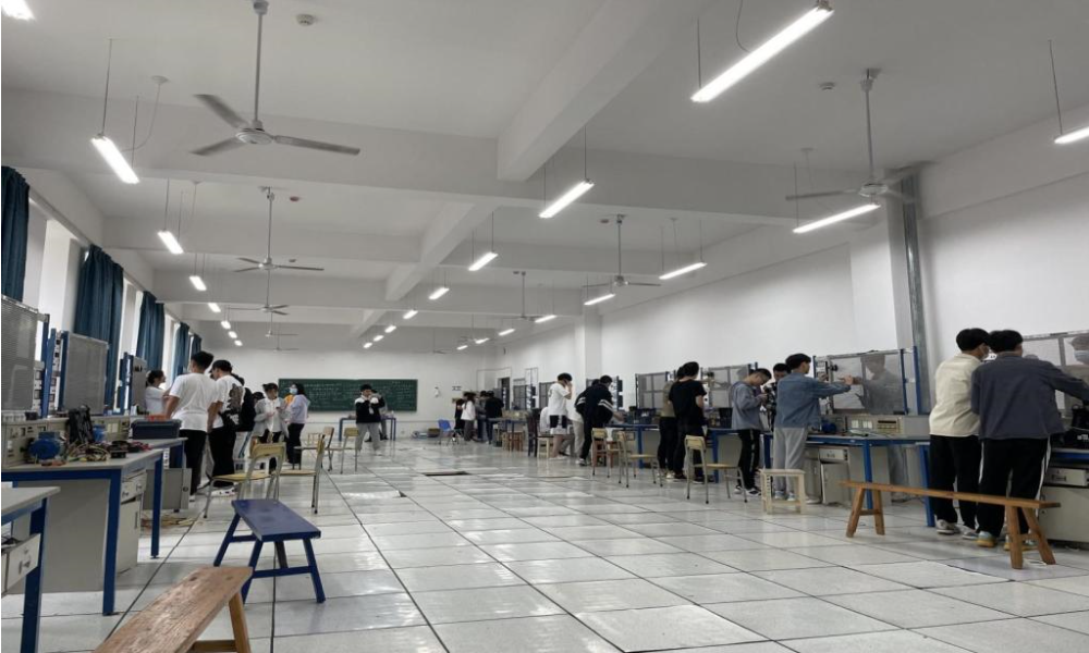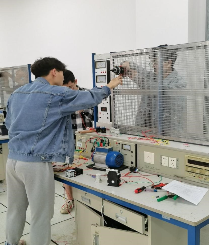 本次竞赛传承往届比赛规制,积极鼓励学生参赛,要求选手在两个小时内能够设计并安装一台电压400V、功率147KW、COS¢0.85的三相异步电动机控制回路。考验的是选手们对电工知识的掌握,有效提高了学生对动手操作的兴趣,体现了团队协作的良好精神。