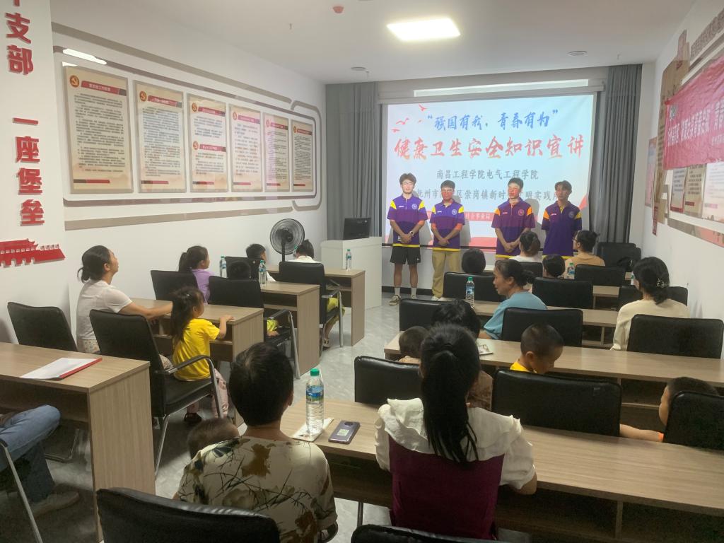 7月5日,PA视讯集团网站“蓄电赋能”暑期“三下乡”社会实践团队成员师生一行五人联合抚州市高新区崇岗镇新时代文明实践所深入崇岗镇站前社区开展卫生健康安全知识宣讲。