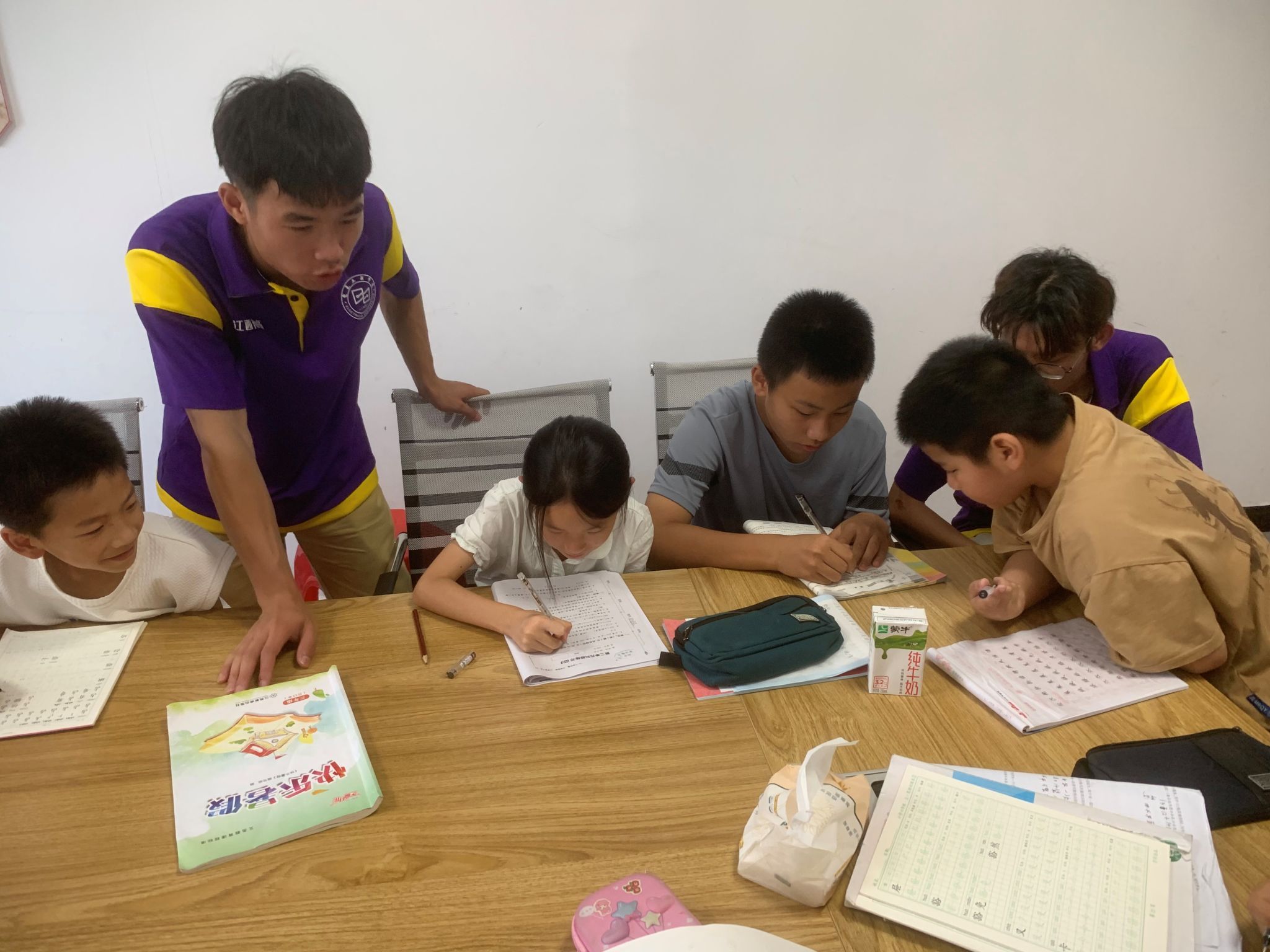 活动中,实践团成员们与孩子们一起参与趣味作画活动,现场培养孩子们的耐心和动手能力,手把手教孩子们通过汇画表达崇尚科学,反对邪教的重要寓意,教育孩子们听党话、跟党走。课堂上,志愿者对留守儿童进行现场课业辅导,辅导孩子们完成假期作业,与孩子们共同阅读,并化身“安全小卫士”,通过讲解案例、情景模拟等寓教于乐的方式,向孩子们普及防溺水、安全用电、自护自救等相关知识,充分提高孩子们的自我保护意识。