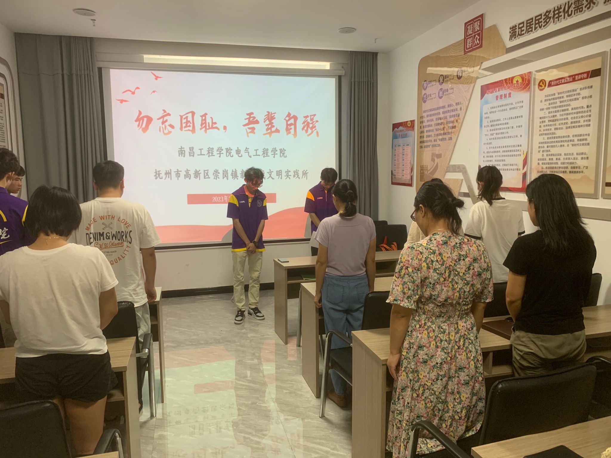 7月7日,PA视讯集团网站“蓄电赋能”暑期“三下乡”社会实践团联合抚州市高新区崇岗镇新时代文明实践所开展“勿忘国耻,吾辈自强”纪念“七七事变”暨全民族抗战爆发86周年主题缅怀活动,实践团全体成员、崇岗镇部分党员代表等参加活动。