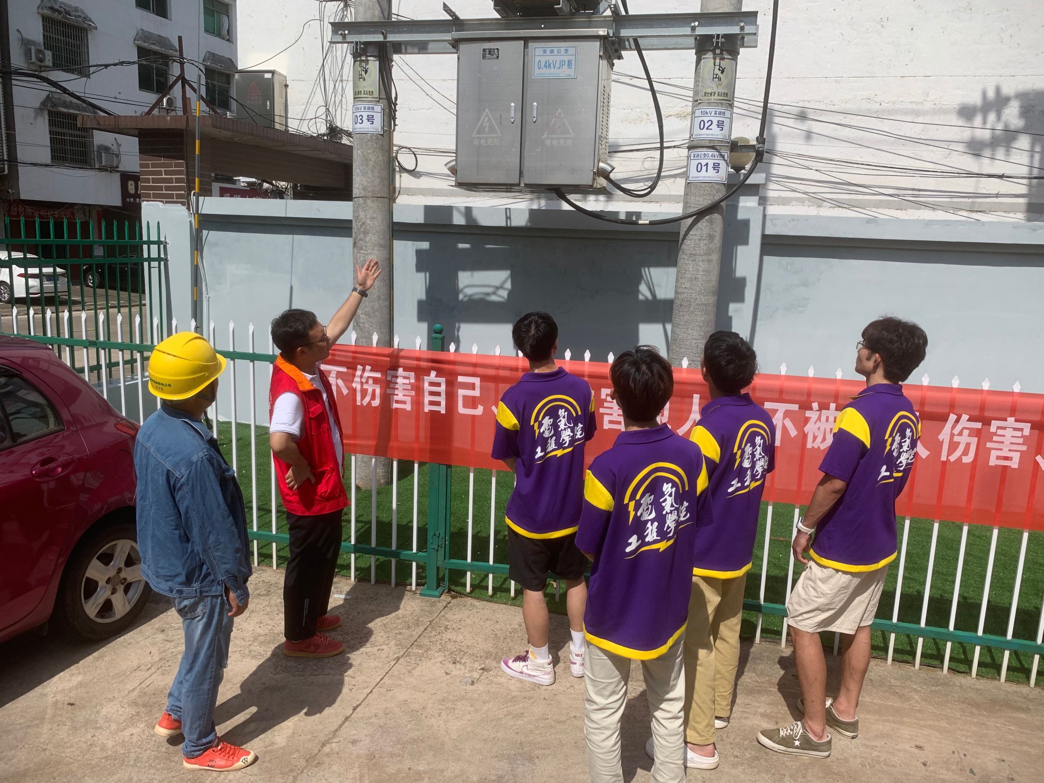 实践团成员与供电所工作人员一起,为乡镇村民讲解用电安全知识,并推广“赣节电”APP普及使用方法。通过向村民介绍线上推广手册,现场教学用户通过活动内页查看用电情况、用电妙招,帮助客户进行月度节电赢取奖励。烈日下,实践团成员还与供电所维修人员一道,结合专业知识对高温天气下乡镇重要变电设备进行巡查,确保及时排除设备故障。