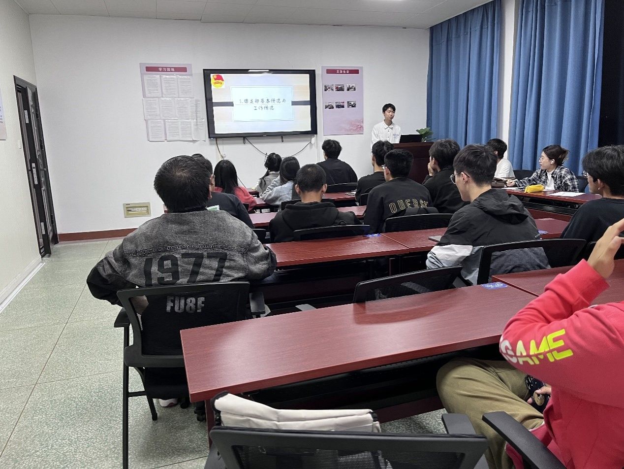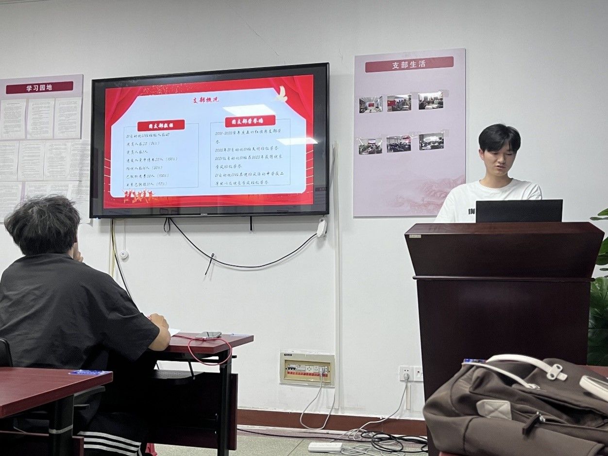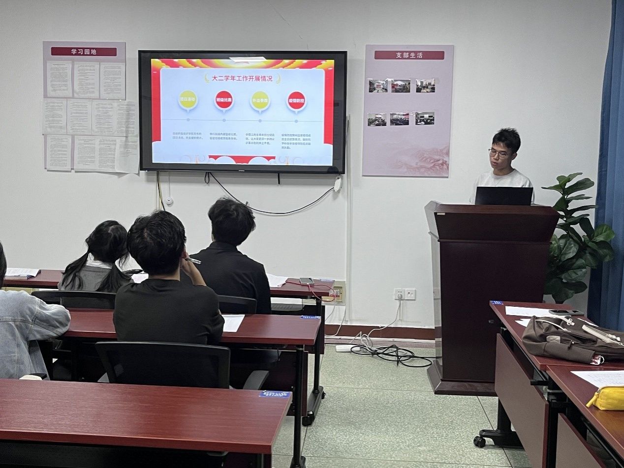 述职大会现场,各班级团支书依次进行述职。通过PPT全面介绍了团支部概况、主题教育实践、主题团日活动、三会两制一课、青年大学习、推优等工作开展落实情况和成效成果,总结了工作不足并提出下一阶段工作计划设想。